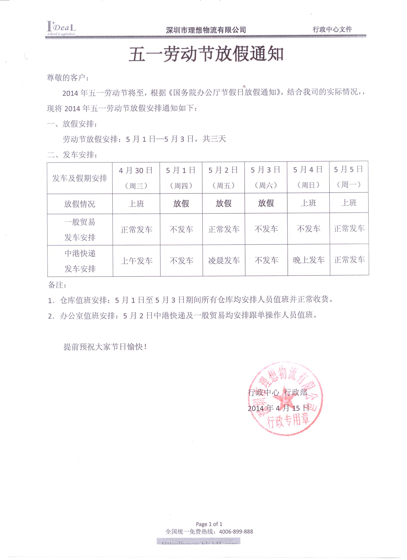 - 關(guān)于終止與深圳市理想通達(dá)物流有限公司合作的通知
