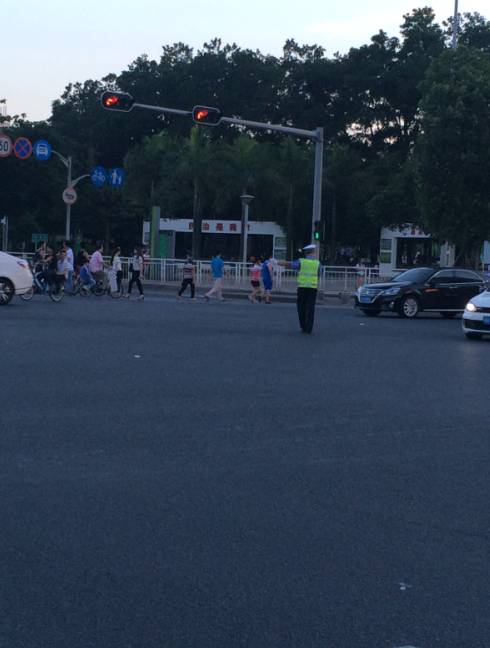 某天下班我突然發現這里多了一位交警在這里指揮交通。他很嚴肅的在那里,馬路紅燈一亮他立刻吹響口中的臊子,揮舞著手臂提示行人通過;哪條路行駛道的紅燈一亮,他立刻轉向行車道一支手指著行駛的方向,另一只手告示司機此條路現在可以通過……自從有了他每天上下班的出現,這里的交通井然有序,我們再也不用擔心過馬路時突然橫出一個馬路殺手了。他不高,不帥,甚至有點矮,但是在這個十字路口他儼然成了一道亮麗的風景線。