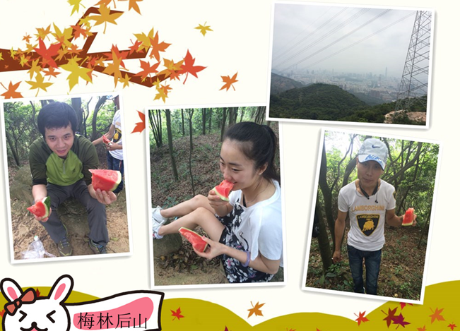 登山的入口還是和往常一樣,在梅林關。簡單的拉伸之后,我們就開始登山了,因為平常還算有鍛煉,所以不會很辛苦,不過我們的另外一位同伴—供應一般貿易拼車出口退稅部的美女,平常缺乏鍛煉,在半道上和我們分開了,看來在盡心盡力處理一般貿易出口業務退稅的同時,體育運動也不可缺乏啊,身體才是革命的本錢,有了好的身體,才能為大家供一般貿易拼車最優質的服務項目。山頂風光格外精彩,最重要的是,我們還背了個大西瓜上山哦,大汗淋漓之后西瓜可真是透心涼的舒服!稍事休息我們就開始下山,上山容易下山難,今天的新路線比較長,比以往的長了近8公里,難度比較高,還有需要借助繩索的地段,雖然艱辛,倒也最終完成了目標,出了一身汗,精氣神感覺也要好了很多。