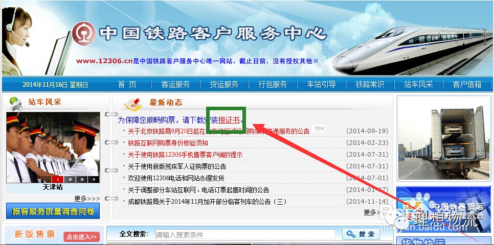 進入12306官方網站后,在首頁的信息動態欄第一個提示就是要求用戶下載安裝根證書,可以可以有效的保證用戶在之后的購票過程中流暢順利。
